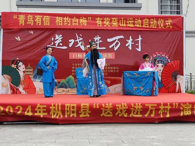 “送戏进万村”是安徽省50项民生实事项目之一,为扎实有序推进此项目,枞阳县文旅局坚持正确导向,强化责任落实,注重活动实效,确保2024年“送戏进万村”项目高质量落实,4月6日,枞阳县2024年“送戏进万村”首场演出在白梅乡岩前村开演。