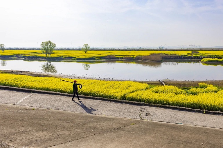 油菜花开,入目皆是金黄。漫步在花海中,随手一拍都是浪漫美景。摄影爱好者们,用相机记录下这美好的时刻。