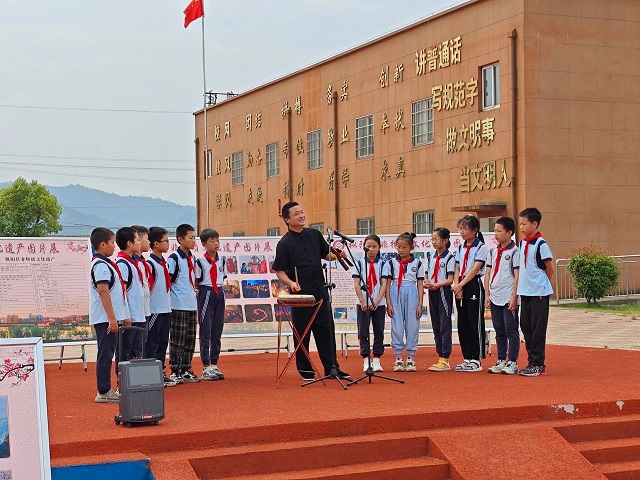 同时,此次非遗进校园活动还邀请了网络达人阿宝为学生们表演枞阳大鼓书《先让礼让美名扬》,使学生近距离感受枞阳县市级非遗项目枞阳大鼓书的独特魅力。