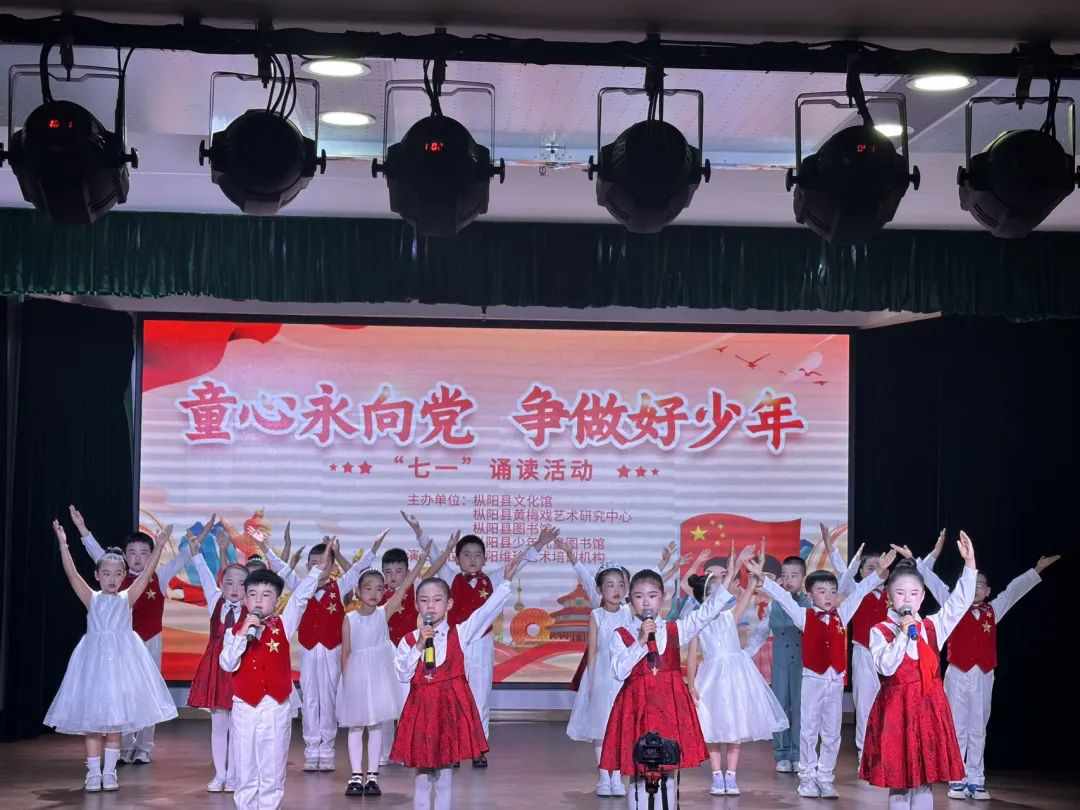为庆祝中国共产党建党103周年,厚植新时代少年儿童爱国主义情怀,传承红色文化,6月22日,由枞阳县文化馆、枞阳县黄梅戏艺术研究中心、枞阳县图书馆、枞阳县少年儿童图书馆主办,枞阳维珍艺术培训机构演出的“童心永向党 争做好少年”七一诵读活动在文化馆一楼小剧场开展。